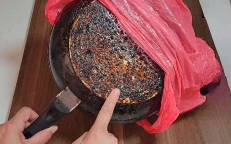 Sin embargo, existe un truco poco conocido pero que puede salvar tu vida y la de tus utensilios de cocina. Muchos prueban el truco revelado por amas de casa experimentadas de colocar una bolsa de plástico sobre la sartén.